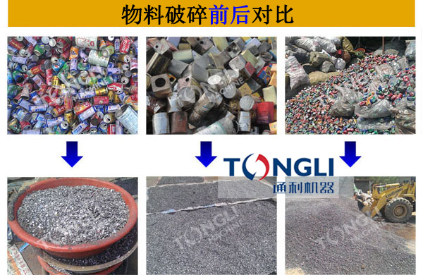 小型易拉罐粉碎機可處理物料包括:易拉罐,露露罐,紅牛罐,鐵罐,鋁罐,啤酒罐,花盒,油漆桶,轉(zhuǎn)子,定子,鐵屑,輕薄料等廢金屬,型的易拉罐破碎機也可以處理廢鋼,廢鐵,彩鋼瓦,鐵皮,汽車殼,發(fā)動機,輪轂,廢舊家電等物料,用戶只需告訴我們您廠區(qū)的待處理料即可,我們便能快速的為您提供出生產(chǎn)方案,為您搭配合適的生產(chǎn)線,并為您提供產(chǎn)品的報價。